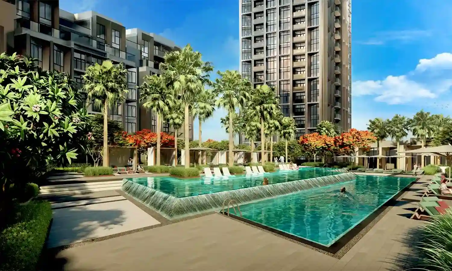 A sparkling oasis for relaxation and recreation, the pool becomes a focal point, inviting residents to unwind and socialize in a serene aquatic environment.